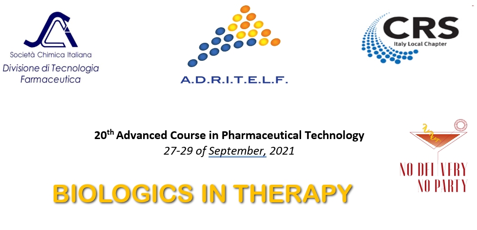 Biologics represent a leading frontier of therapy and diagnosis, with a growing interest especially during the COVID-19 pandemic. However, the disadvantageous biopharmaceutical profile of these agent hampers their optimal clinical use. Thus, the development of ad hoc formulation to overcome these issues remain the main challenge for the transformation of these compounds into effective medicinal products. The most recent technological drug delivery approaches provided unique tool to speed up the clinical development and industrialization of biologic-based medicinal products. The aim of this advanced course, that will be held online, is to give an overview of the clinical opportunities and the most advanced delivery strategies for biologics. The program includes speakers with different expertise able to approach the main aspects related to the topics. Suitable time is reserved to the discussion with experts to improve the understanding of the treated issues. Sections of the course will be reserved to the oral and poster presentations by PhD students.The course will end with a workshop in form of parallel round tables where the PhD students will have the opportunity to share their experience and to discuss their research.